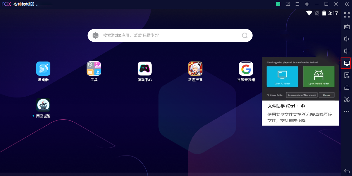 夜神模拟器采用先进的内核技术,操作简单、运行流畅、兼容性强。通过夜神模拟器,您可以在Android任意版本上运行手机游戏。通过大屏显示和键鼠操控可以获得比手机更好的视觉享受和操控体…
