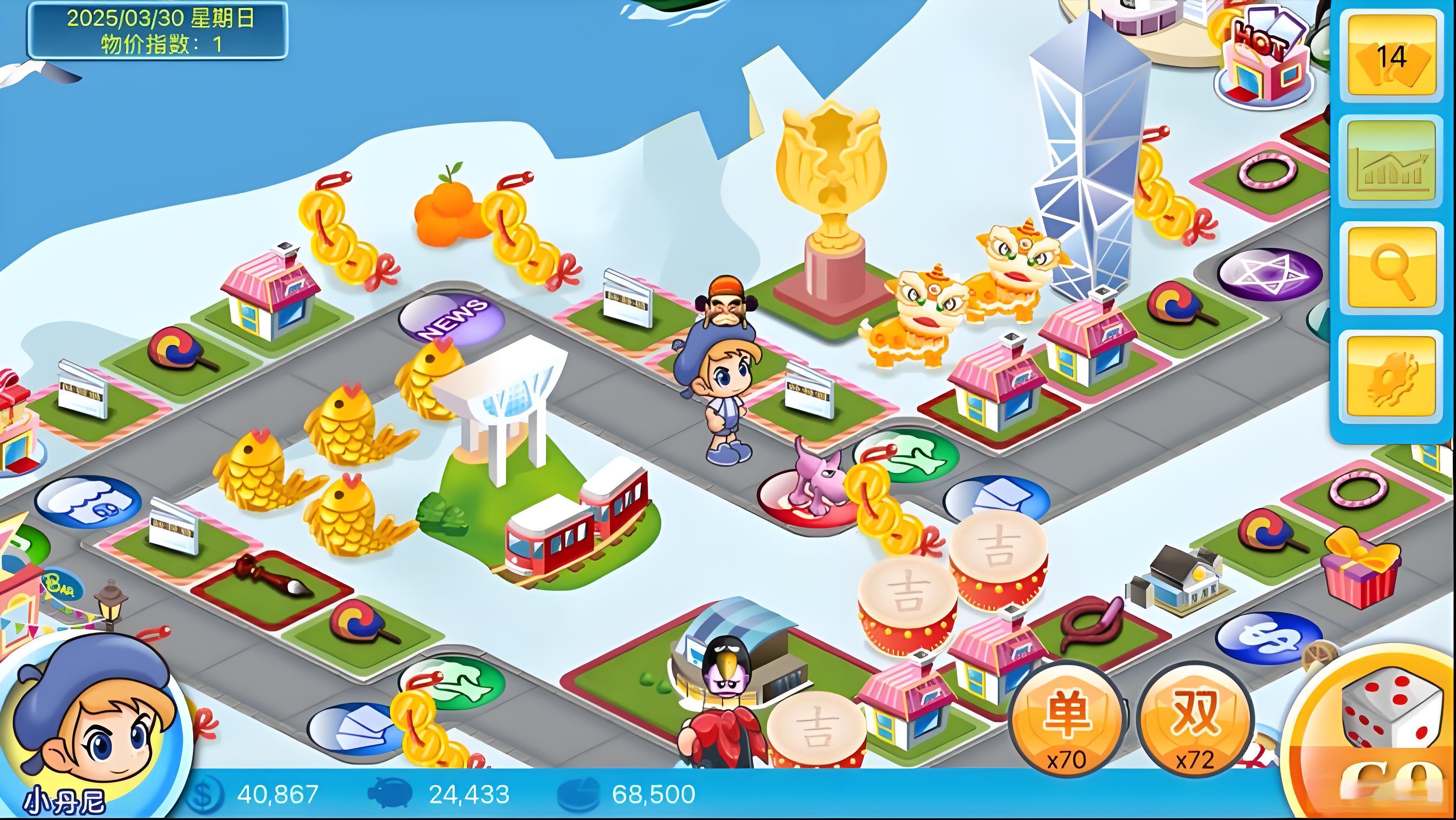 大富翁是经典多人策略桌游,玩家掷骰子移动,买地盖楼收租,凭交易策略与道具干扰对手,最终让其他玩家破产,成为唯一赢家,兼具运气与策略性 。