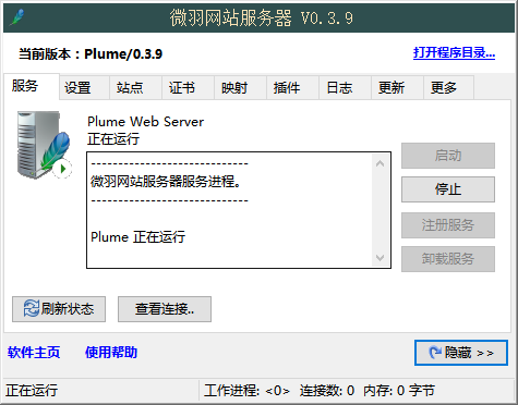 微羽个人网站服务器电脑版是一款极速、高效、精致的Web服务器,微羽个人网站服务器电脑版是一款体积小、性能高的Web服务器软件,支持CGI,PHP,是一款非常不错的软件。
